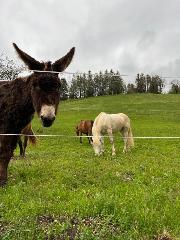 L'été au pré 24h/24h dans plusieurs prés en rotation avec abri naturels et terrains variés. L'hiver, toute la journée en mini paddock paradise pour favoriser les liens sociaux et le mouvement avec différents points d'intérêts et foin à volonté sous filet sur plateformes stabilisées, et la nuit en box individuel, sur copeaux nettoyés tous les jours.