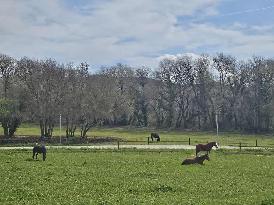 Nous proposons de grands paddocks et des prés d'1ha et 2ha équipés d'abris, d'abreuvoirs automatiques avec ombre naturelle.