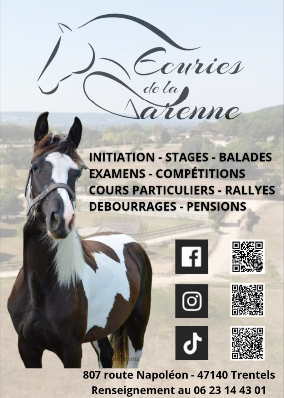 Situées à Trentels, à seulement 13 km de Villeneuve-sur-Lot et 30 km d’Agen, les Écuries de La Garenne vous accueillent dans une ambiance chaleureuse et familiale.