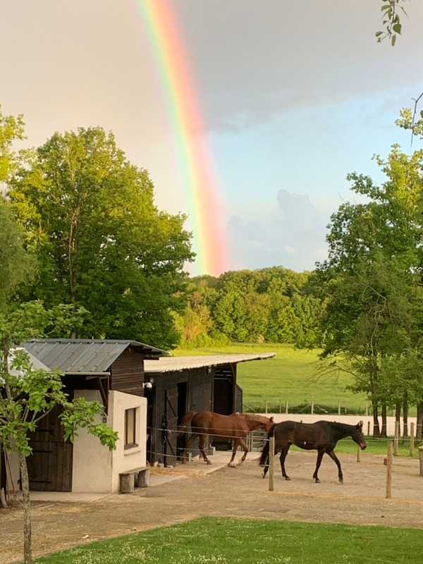 - box 3x3m avec abreuvoir automatique donnant sur une grande terrasse et un paddock en herbe individuel