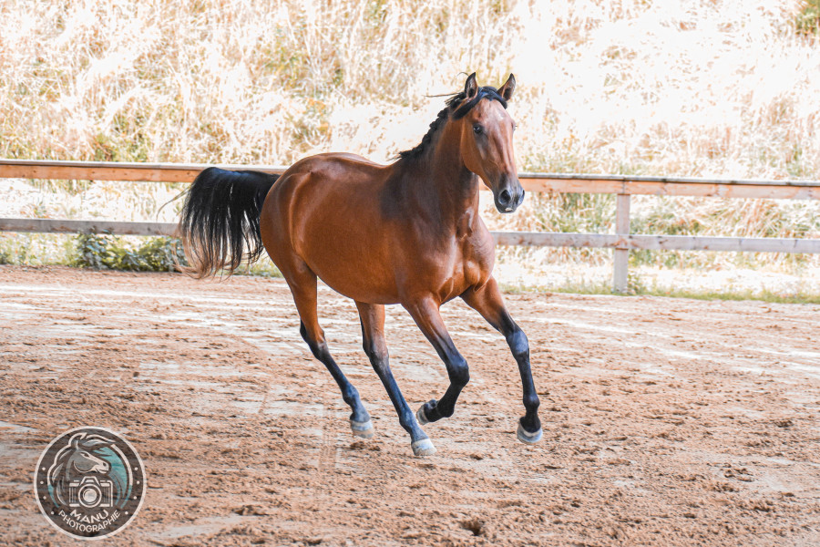 Tanais de Cenves est une pouliche pleine de vie. Elle possède des allures rebondissantes et un très bon équilibre. Son débourrage est prévu au printemps.