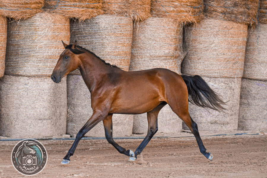 Tanais de Cenves, pouliche Pur Sang Lusitanienne, baie née le 13/03/2023.
