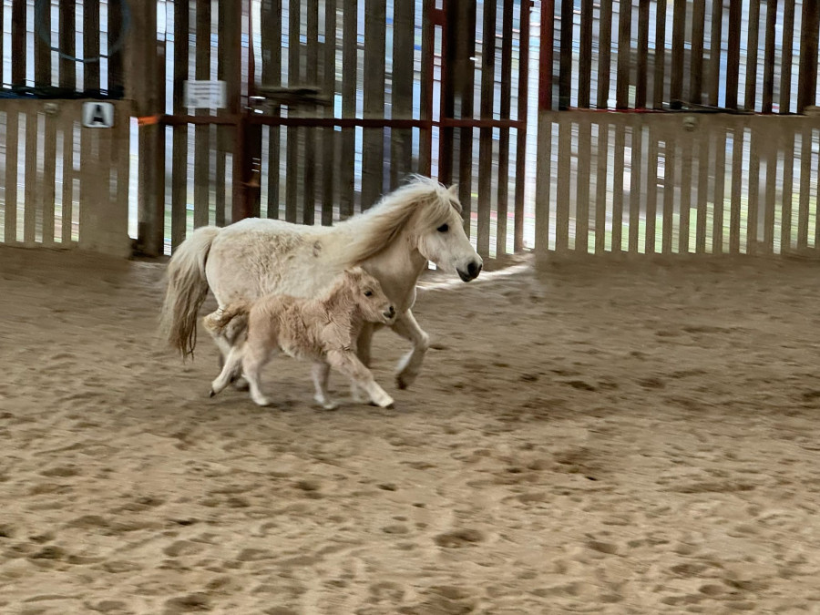 Pikachu de Cenves, poulain OC, pie Palomino né le 19 Février 2025.