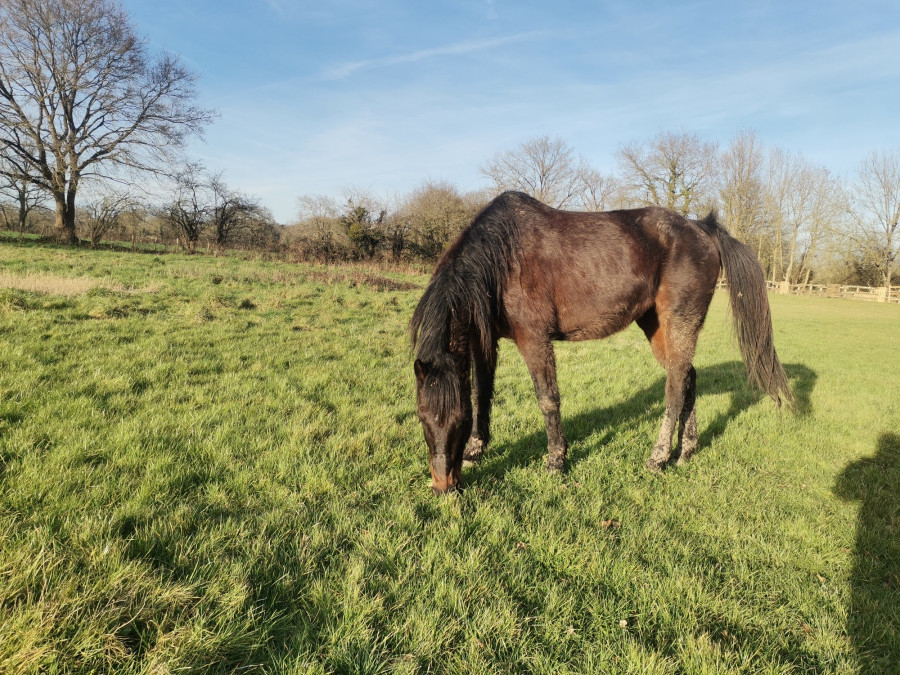 Cheval qui vit en extérieur, pieds nu et n'a jamais été malade (sans aucun traitement ni vaccins à ce jour). Paré 1 à 2 fois par an fonction de la pousse et de la dispo du maréchal.