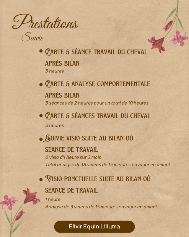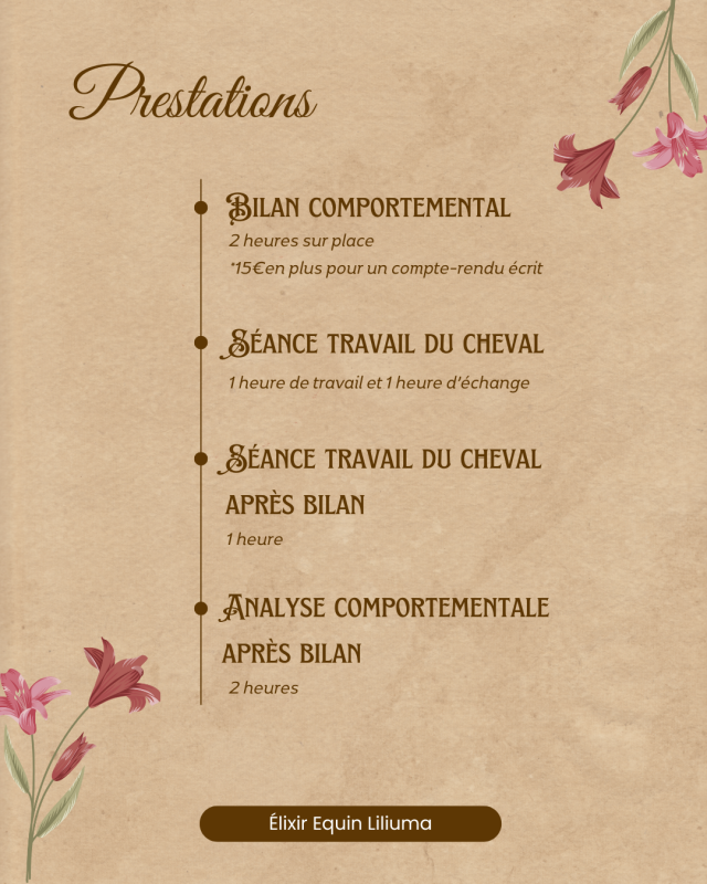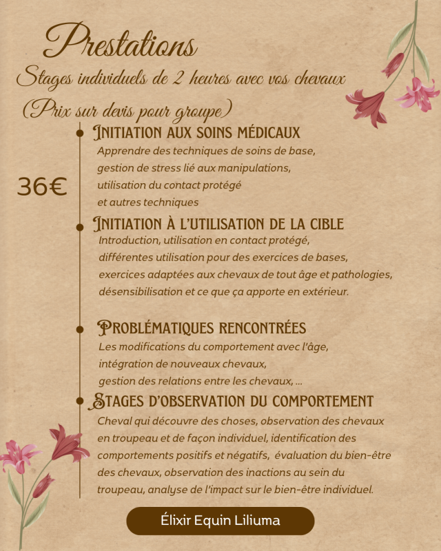 Bonjour à vous, mon entreprise d'éducatrice comportementaliste équin est enfin crée, nomme Élixir Équin Liliuma !