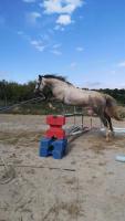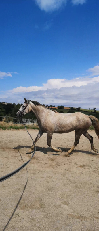 Jument débourrée aux trois allures depuis peu donc pas usée. Reste encore verte dans le travail.