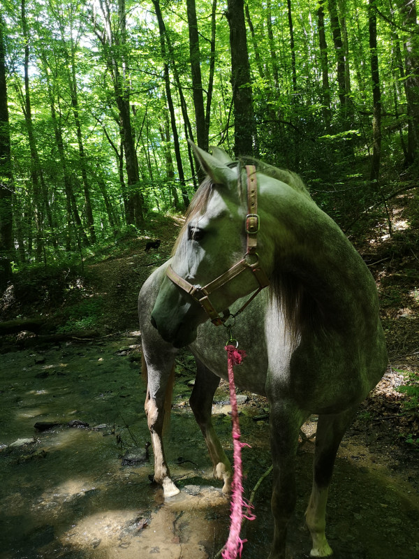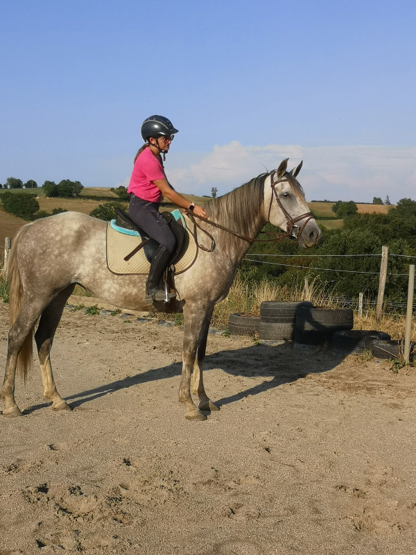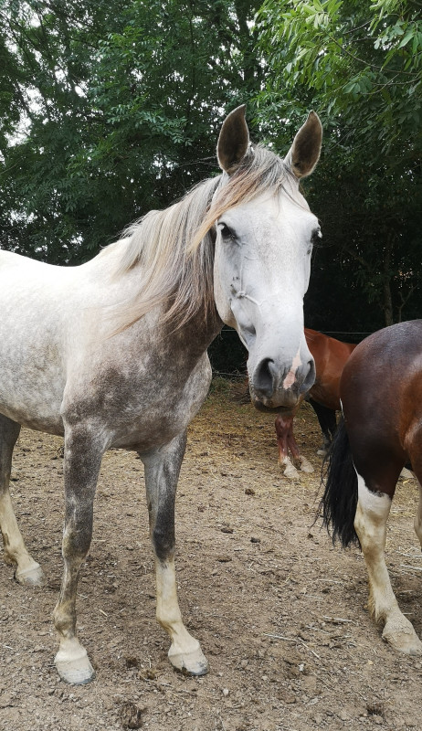 Jument très gentille, aucun vice mais énergique, nécessite un cavalier qui lui transmettra son calme.
