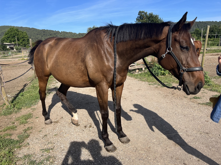 Jument dans le sang mais très gentille, il faudra un cavalier confirmé .