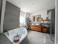 - Salle de bains spacieuse avec baignoire et douche, rangements