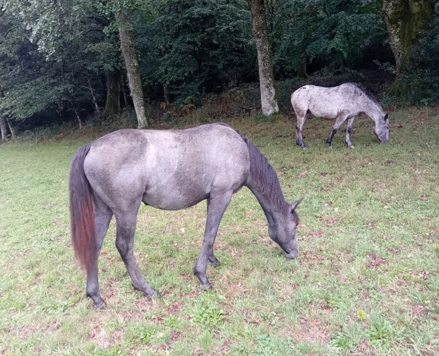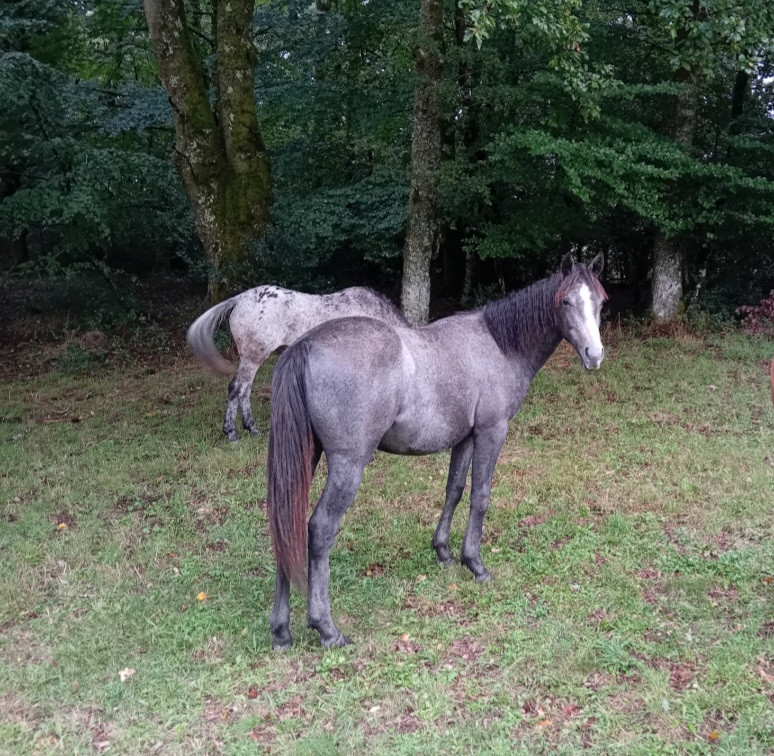 Vit en troupeau au pré toute l'année. Il a de très beaux pied. Suivi par un podologue. A joye vaccins.Aura un super mental. Autant un futur poney de loisirs que de compétition.