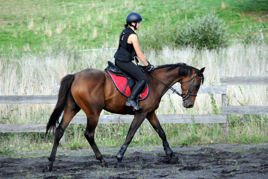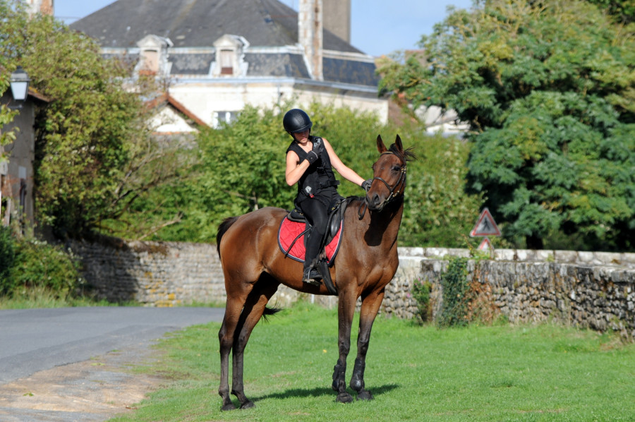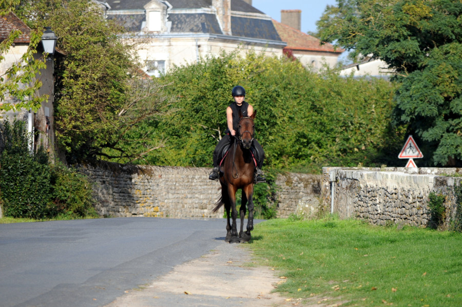 Nina est une jument très bien dressée. Elle part du galop du pas, change de pied, s'incurve, fait des cessions à la jambe etc. Elle enchaîne un tour. Elle est très franche et pas regardante (pneu, palanque etc.). Elle pourra tolérer quelques déséquilibres de la part de son cavalier. Nina sera idéal comme jument pour un passage à cheval et/ou comme jument d'instruction, de loisir ou de sport pour un cavalier à l'aise aux trois allures.