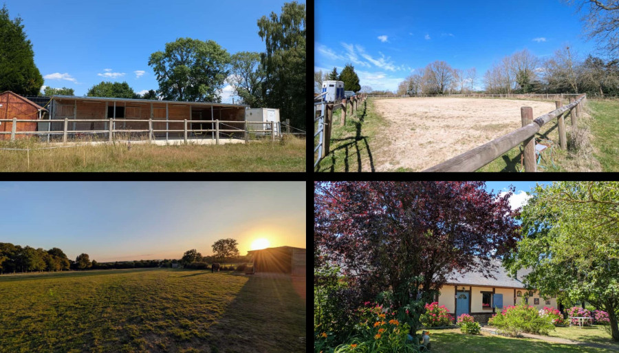 Trois boxes spacieux, avec un grand auvent pour protéger du soleil ou de la pluie, espace maréchalerie pansage, douche, sellerie graineterie, une grange en dur avec grenier, pouvant être aménagée en quatre boxes supplémentaires, trois abris de prés dont un double, des paddocks en sus du pré principal, une carrière sablée de 40 x 20, deux hangars pour le matériel, un grand parking pour les véhicules.