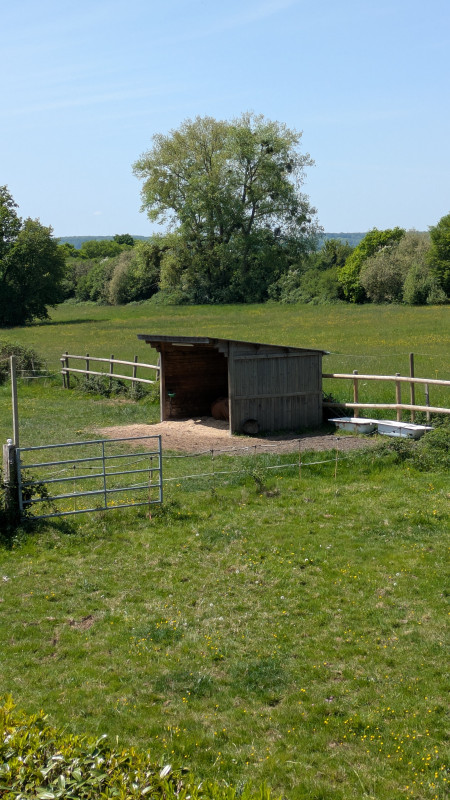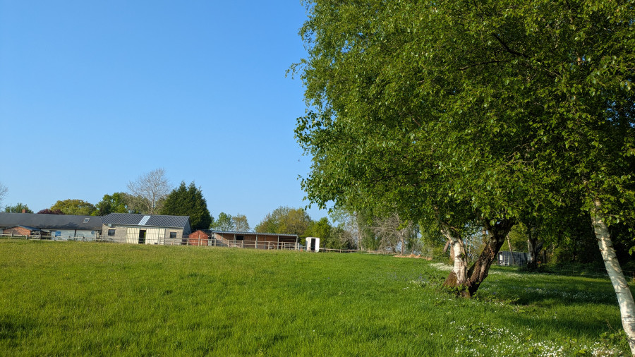 Au calme absolu et sur plus de 3.2 hectares de pré, avec partie boisée qui leur est accessible, vous trouverez tout pour faire le bonheur de vos chevaux :