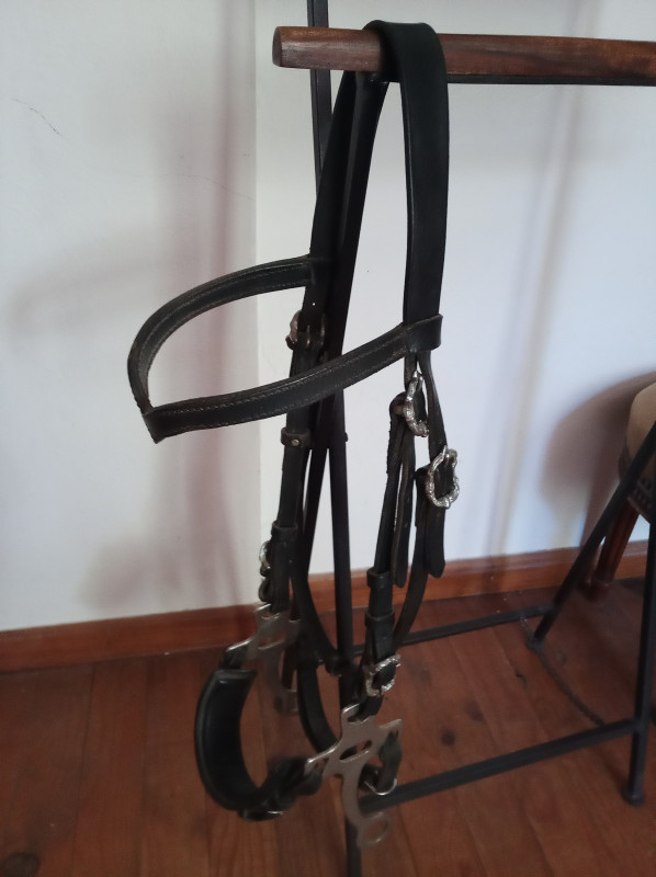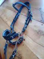 Bridon portgais de la sellerie Phoenix, taille cheval, vendu avec hackamore Sprenger et rênes