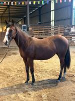 ? Travail au sol : marche très bien en main (longe longue), connaît le spin et le side pass des deux côtés, se longe facilement et répond aux ordres vocaux.