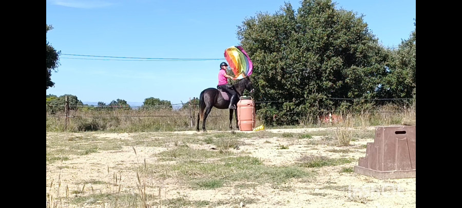 Mistral est un hongre gris ONC de 3 ans. Il mesure 1m45. C'est un cheval très proche de l'homme, câlin, gentil et calme. Une vraie perle ! Il vit en groupe, au pré et est pieds nus.