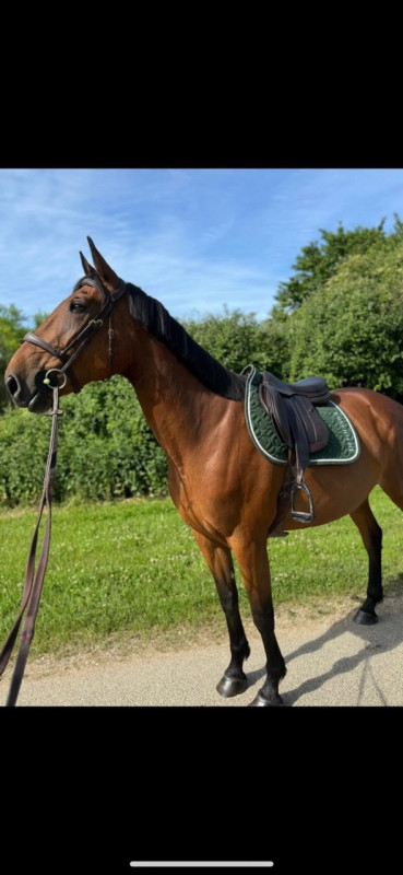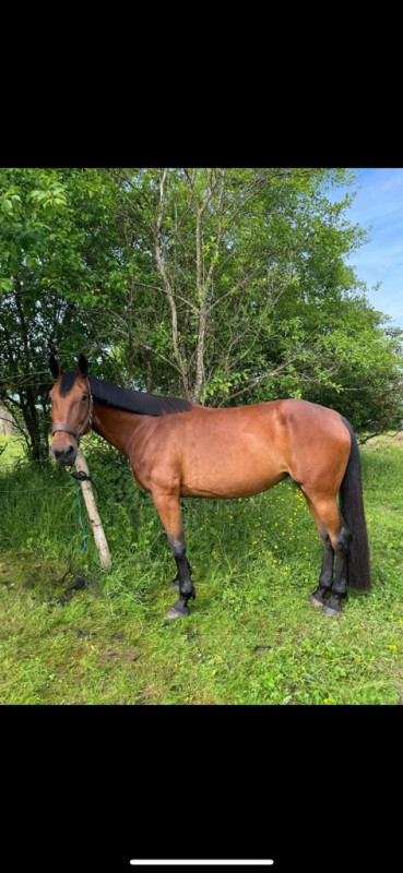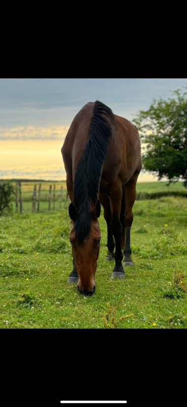 Jument agréable et douce, s'attrape facilement au pré. Elle peut être montée en balade seule ou accompagnée et n'est pas craintive (passe partout)