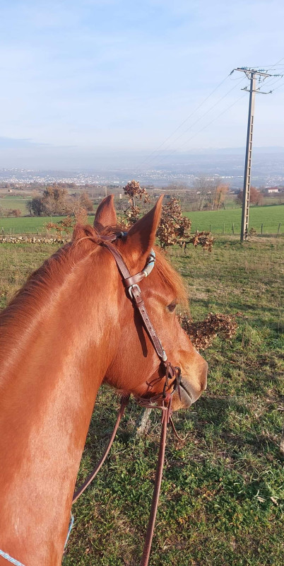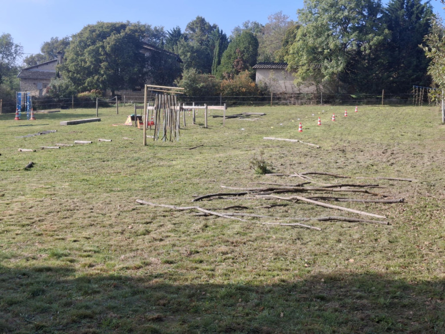 Sur place un parcours de Mountain trail, un lieu fermé pour travailler votre cheval. Des chemins de balade à la sortie du pré.