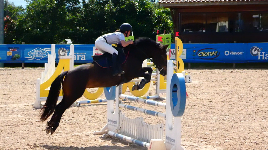 CSO : A débuté en Cycle Classique Poney 4 ans avec un excellent comportement. Elle évolue actuellement en Cycle Classique Poney 5 ans et montre un potentiel pour les hauteurs 1m20 ? 1m30. De nombreux sans faute en 1m et 1m 05.