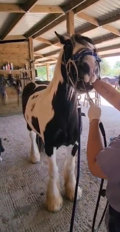 Inuk est a la recherche de sa moitié, il est monté aux 3 allures mais encore vert ds le travail, il part en balade accompagné pour l instant, il a le pied sûr. A jour vaccin, ostheo, dentiste, parage, il est née en élevage IRish cob, au centre équestre il fait les cours handicapés et les enfants et les adultes debutants.