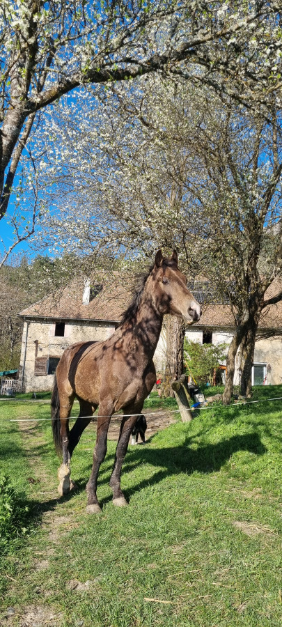 Il est débourré en extérieur aux trois allures, et son débourrage a été un réel plaisir tant son envie d’apprendre, son intelligence et sa compréhension sont évidentes.
