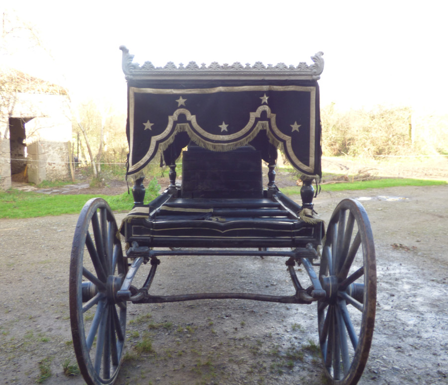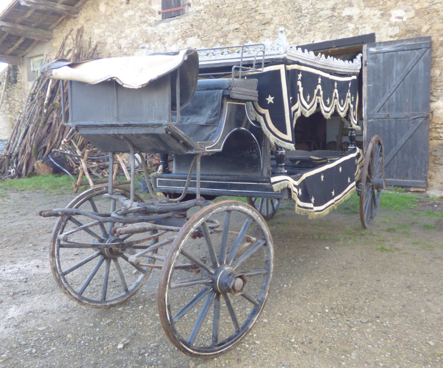 Superbe corbillard hippomobile avec toutes ses tentures d’origine.