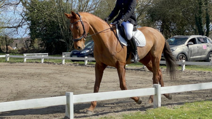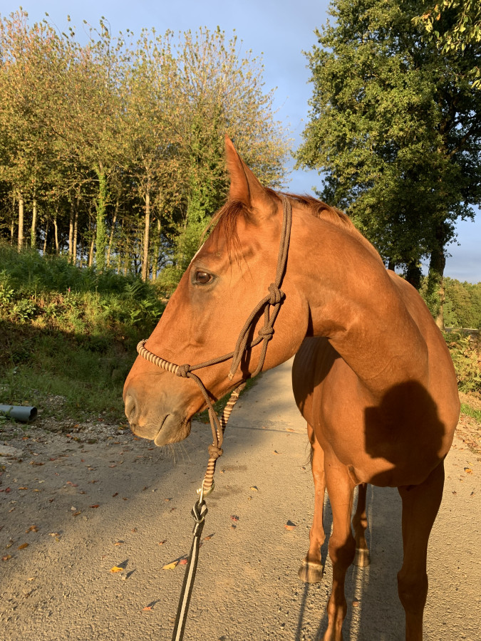 ??Sortait en concours club (dressage, CSO, CCE)mais n’a pas réellement travaillé depuis un an (manque de temps de ma part) donc à remettre au travail, il a de bonnes bases en travail à pied et sort seul ou accompagné en balade.