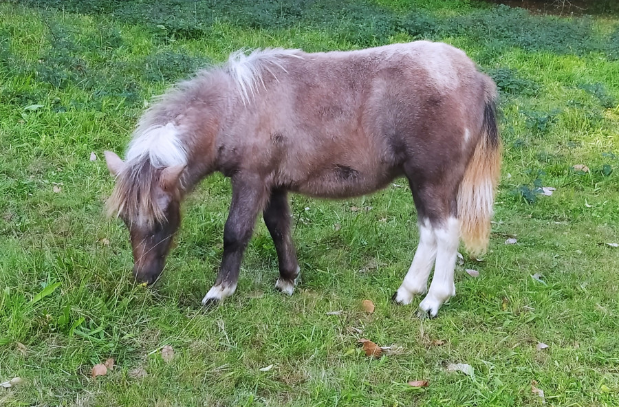 Elle est enregistrée pie alezane, cependant elle change de robe avec la mue du poulain.