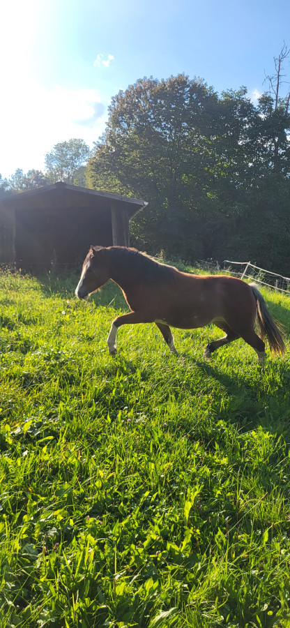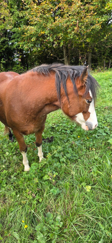 Gentille, respectueuse, vie à l'année au pré.
