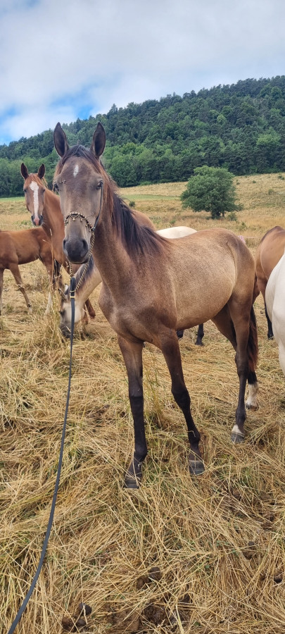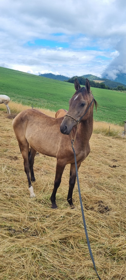 Ozalla est une magnifique pouliche d’un an, représentant à merveille toutes les caractéristiques de la race Akhal-Teké : une grande finesse, des membres longs et secs, surmontés d’un dos court et droit.
