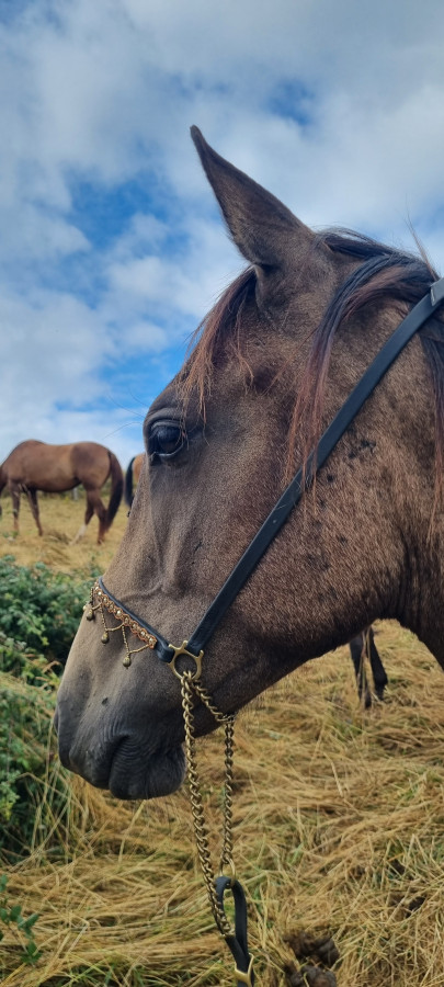 Elle connaît le licol, marche en main, donne les pieds, accepte le pansage et un léger parage.