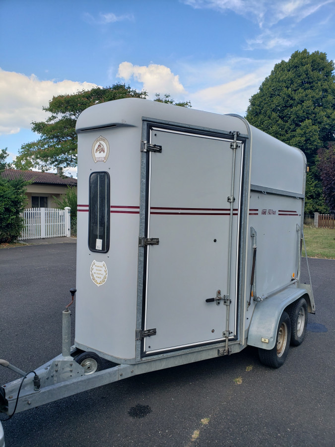 - Deux grandes portes avant, verrouillables en position ouverte et permettant le débarquement du cheval par l’avant en sécurité