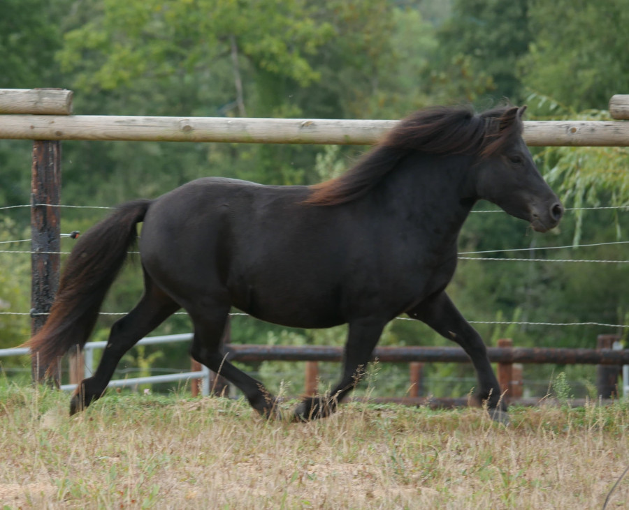 • Père: Silbersee’s Luis – Poney polyvalent et très gentil, aussi compétitif en CSO (IPO 113) qu’agréable pour les jeunes enfants ou en attelage avec des adultes.