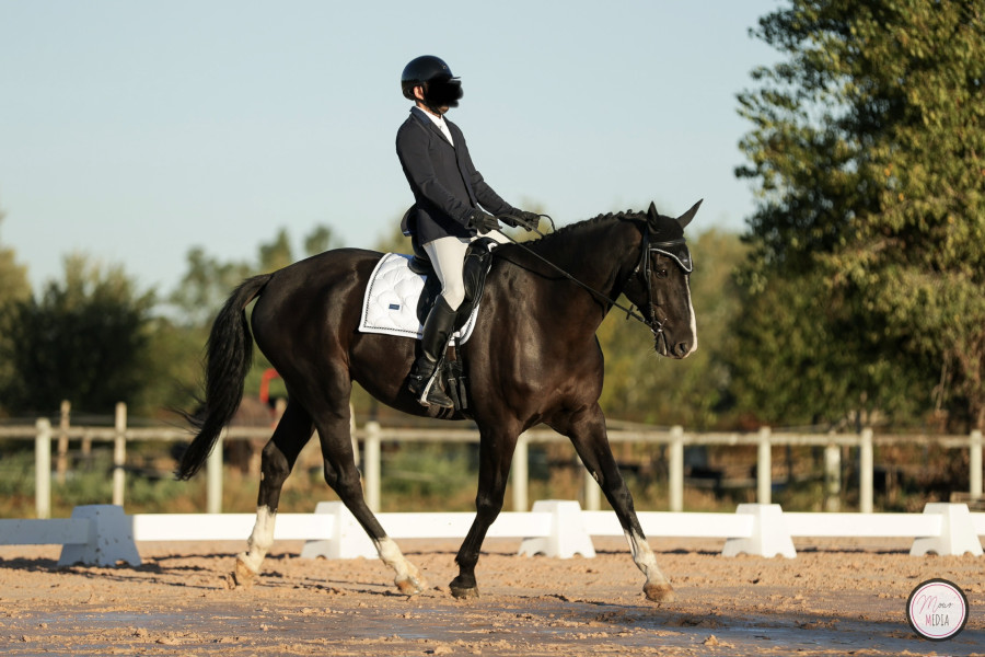Avec de belles allures naturelles appréciées dans un carré de dressage.