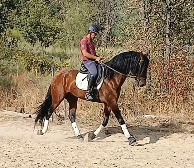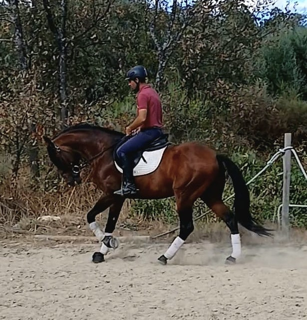 Il évolue en toute sécurité en manège dans les terres du Portugal à côté de Covilha. Il apprécie les promenades. A jour de ses soins vétérinaires, il embarque sans difficulté pour tous types de transports.