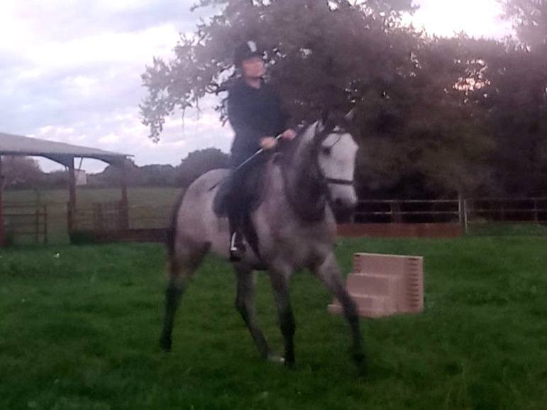 Il vient d'être débourré et se montre très facile, appliqué, respectueux, et courageux. Il a les bases de travail à pied, est bien désensibilisé, accepte le montoir à droite comme à gauche. Il est monté aux 3 allures en carrière (figures de base), et est déjà sorti seul en extérieur, n'ayant peur quasiment de rien.