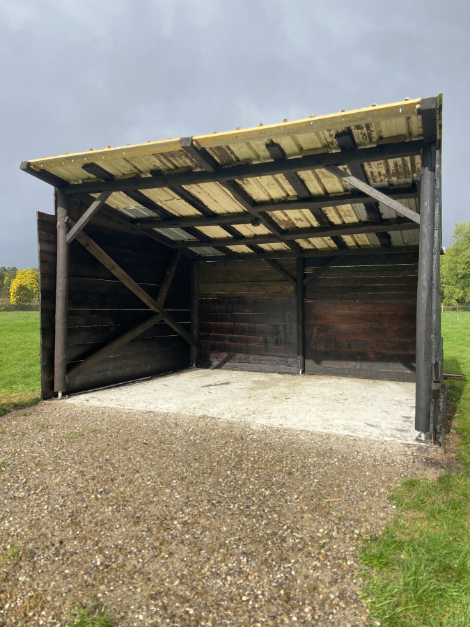 -2 abris stabilisés (dalle béton) et paillés lors des période froides (nettoyés toutes les semaines)