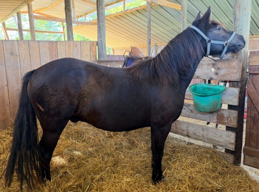Joli poney onc hongre noir prenant 4 ans en 2026 toise 1m28 (sera petit C croissance fini)