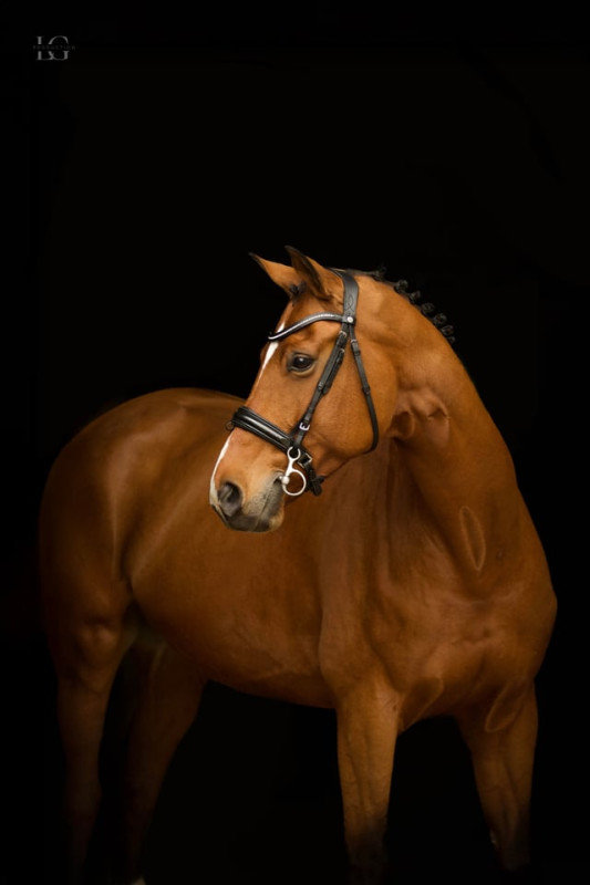Cette jument présente de belles aptitudes sportives, une belle locomotion, et un excellent potentiel pour le concours complet.