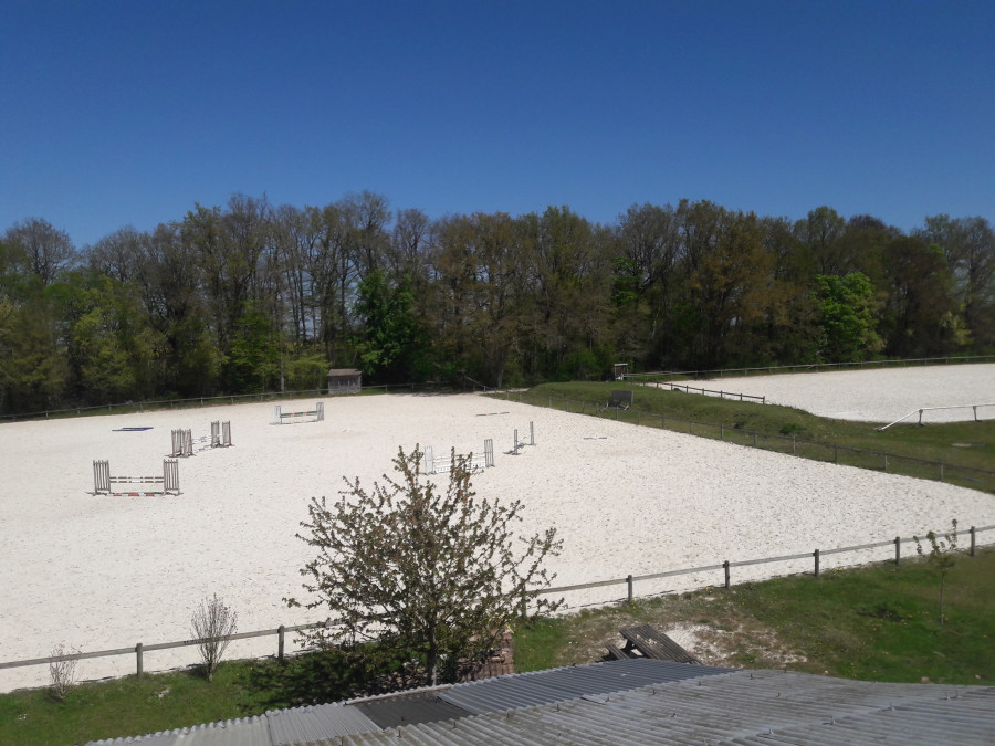 Accès à deux carrières type toubain en sable de Fontainebleau 50x40 et 80x70 avec parc d’obstacles et arrosage. Paddock. Hangar de stockage. Et oganisation de concours sur place.