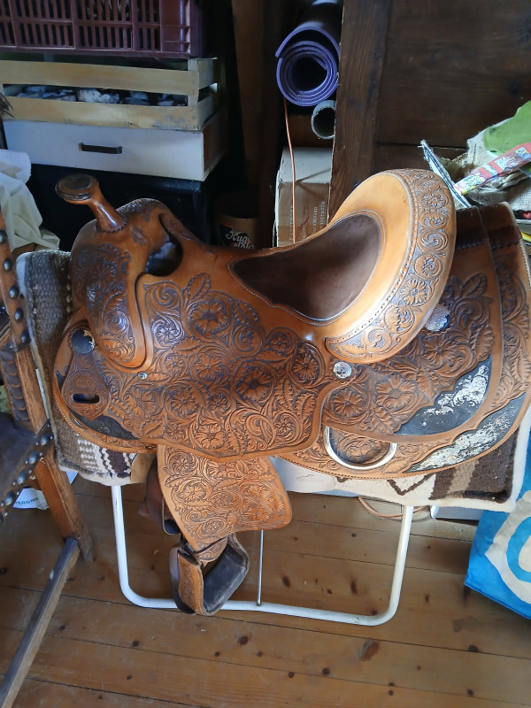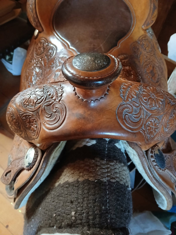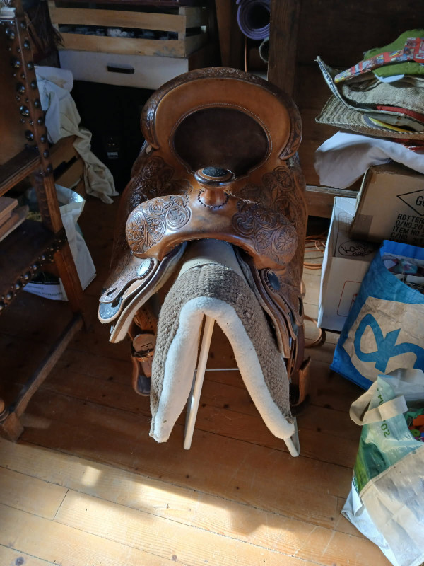 Je vends à contre cœur ma selle d'équitation western, je cherche une personne de confiance qui pourra en prendre soin. Elle est très confortable et idéale pour la promenade et ou le travail du cheval. Elle se situe à Egliseneuve des liards dans le 63.