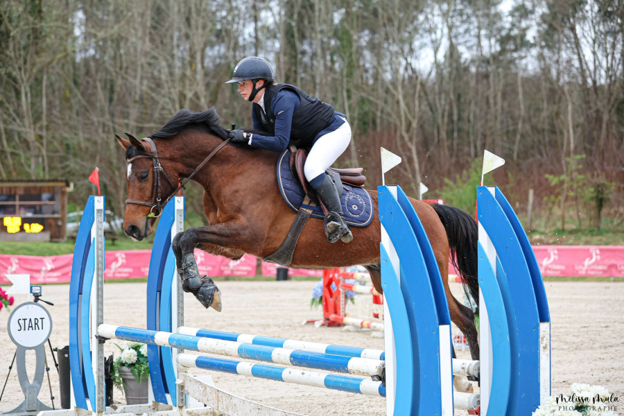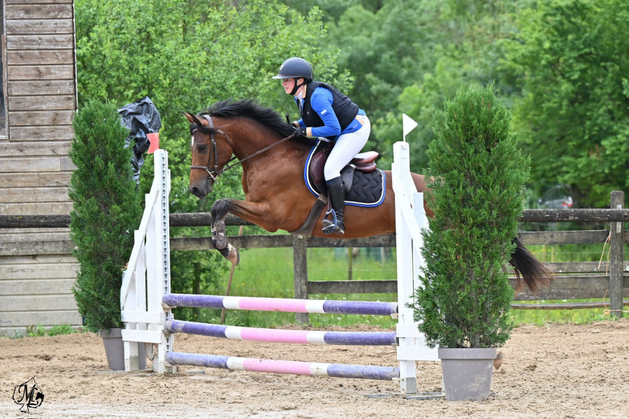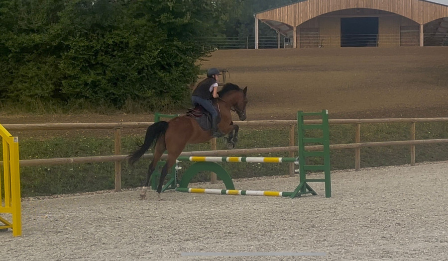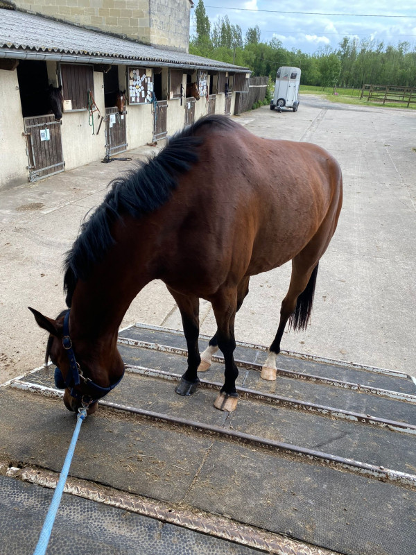 1m59, joli et harmonieux, a bien grandi cette année (un peu tardif au travail du à son mois de naissance). Bien mis sur le plat, bonnes bases de travail à pied, enchaîne un parcours, a fait quelques sorties extérieures, pour faire 1m/1m10 à terme.