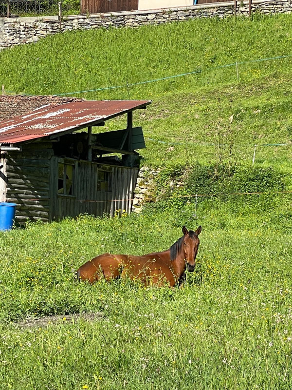 Il vit au pré à l’année et en troupeau.