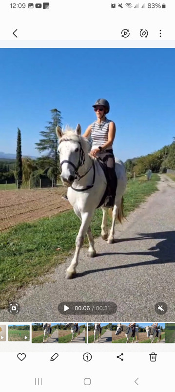 Très proche de l'homme et curieux, il est débourré et se montre polyvalent : travail à pieds, balades, dressage ou saut, il est prêt à faire le bonheur de son ou sa futur(e) partenaire !