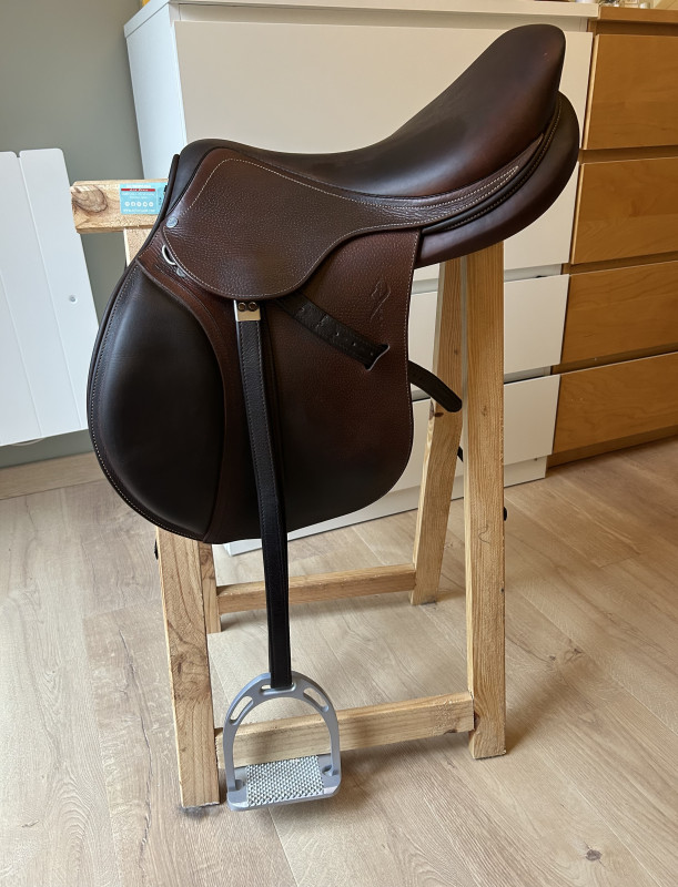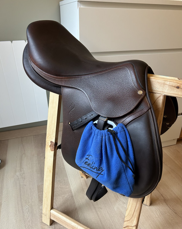 Vendue équipée avec couvre selle imperméable BR doublure polaire, étrivières et étriers feeling à plancher large.