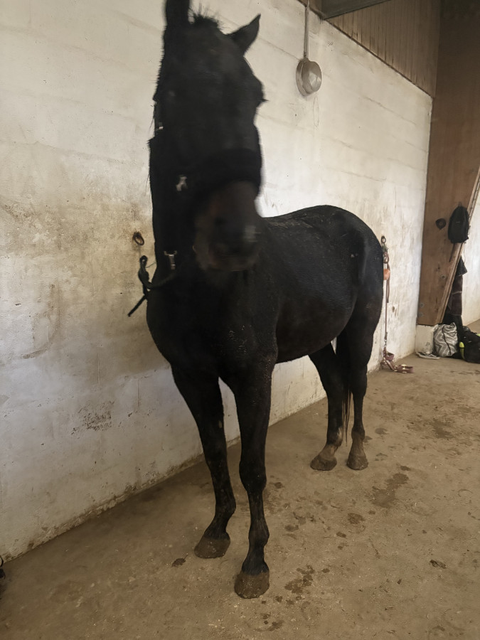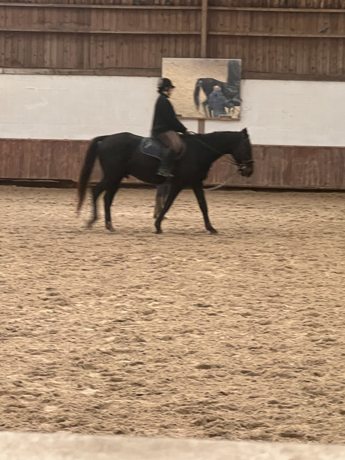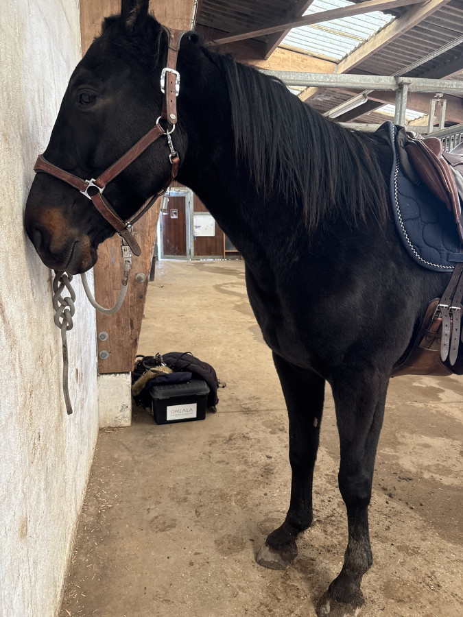 Cheval très gentil, respectueux et super en travail à pied. Il connaît les 3 allures monté, mais reste très vert et manque encore de codes, c’est pourquoi je recherche une personne pour m’aider à poursuivre son éducation.