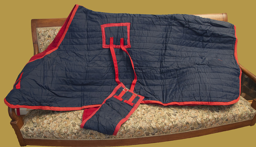 a vendre couverture cheval neuve extérieur marine avec intérieur rouge