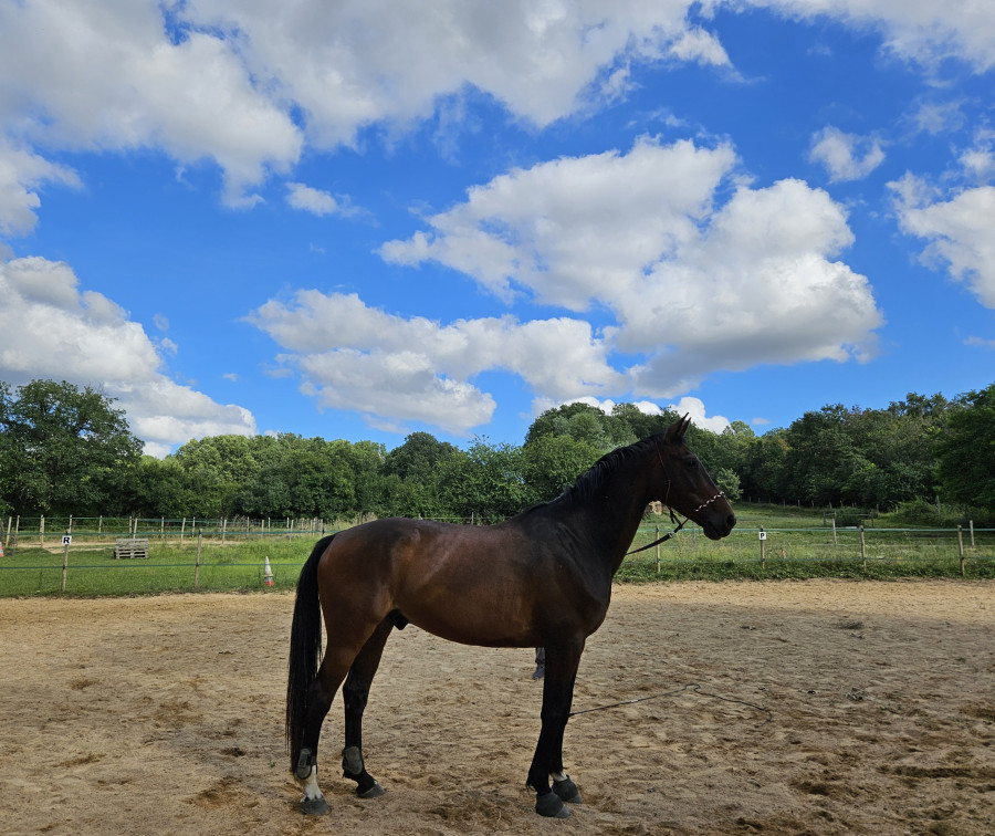 Niveau comportement : il est très fin, monté en mors en cuire droit mais a quand même de la puissance. Près du sang quand il faut. Réceptif à la jambe et au poids du corps. Joueur.