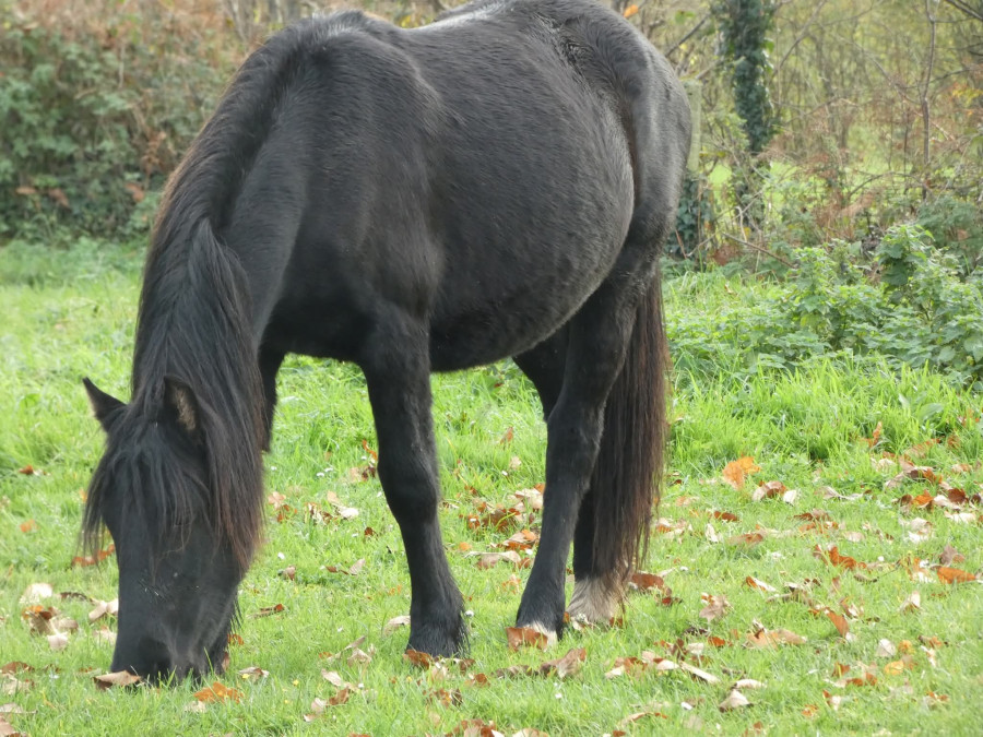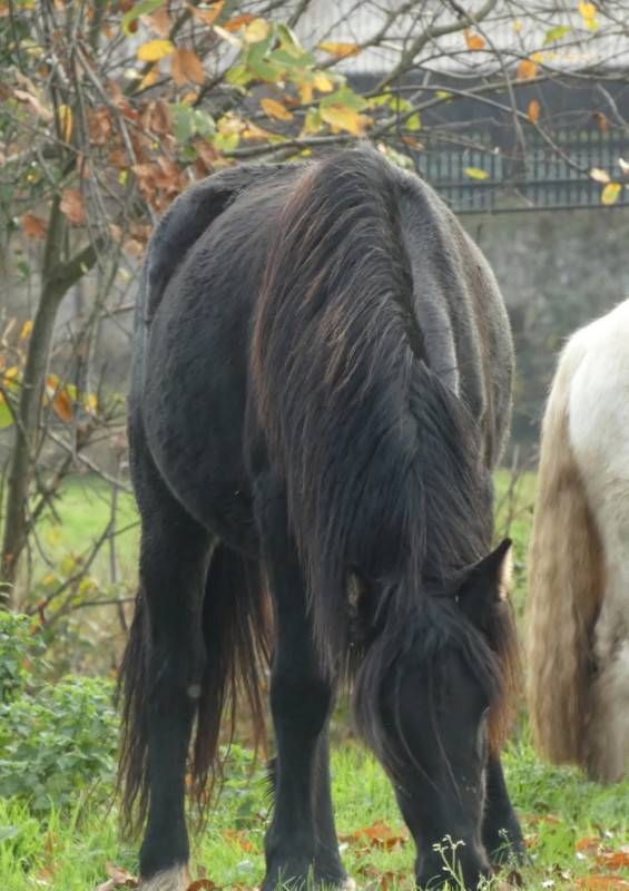 Magnifique pouliche croisé frison, fourni en crins, prend 2 ans en 2026, fait actuellement 1.33m, manipuler, vacciné grippe tétanos et rhino