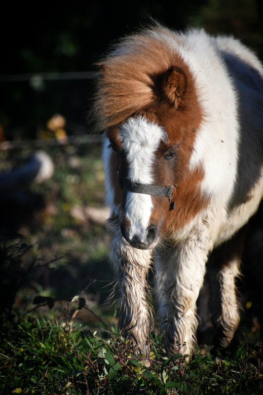Phoenix est un gentil poulain proche de l'homme et câlin. Il est manipulé tous les jours, dort au box la nuit et sort au pré en groupe la journée.
